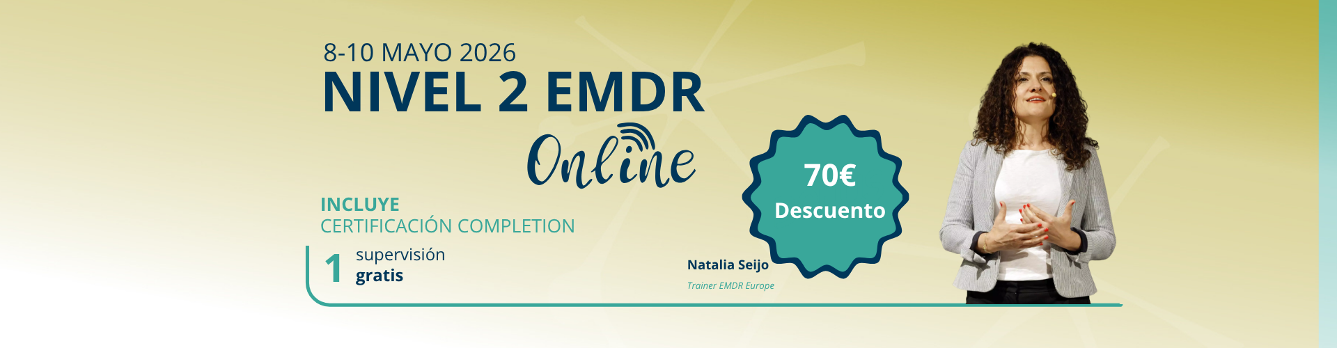 Tras la formación básica el alumno/a obtiene la certificación de terapeuta EMDR y la destreza para poder aplicar el protocolo a pacientes.